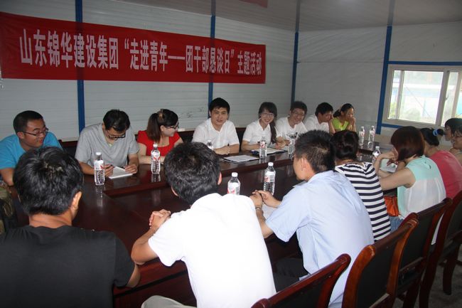 本次活动走进的是锦业公司青岛路中学项目部。集团团干部与锦业公司部分青年代表一起谈看法、谈体会、谈感想、谈工作心得,畅谈美好未来,大家畅所欲言,气氛热烈。活动上,团委书记张涛对一线青年员工提出的问题和想法,做了一一解答,并重点介绍了集团公司的企业文化、用人制度及青年员工培养机制。张涛给青年提出了四点希望:一是希望青年树立远大目标,并紧盯目标,努力实现;二是希望青年做好本职工作,任劳任怨,今日的付出就是为了明日的收获,机会是留给有准备的人的;三是希望青年以锦华为家,于锦华有共同的价值观,同呼吸共命运;四是希望青年不断学习,学以致用,增长知识,开拓眼界,博取众长,为我所用。最后,集团公司团委发放了调查问卷,进一步的了解一线青年员工思想想法。